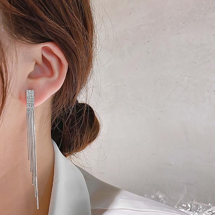 - Silver chain dangle earrings.Gift Occasion:Suitable for any Occasion, Such as Beaches, Event Parties, Dance Parties, Dates, .Daily Collocations,Banquet,Weddings, etc.
