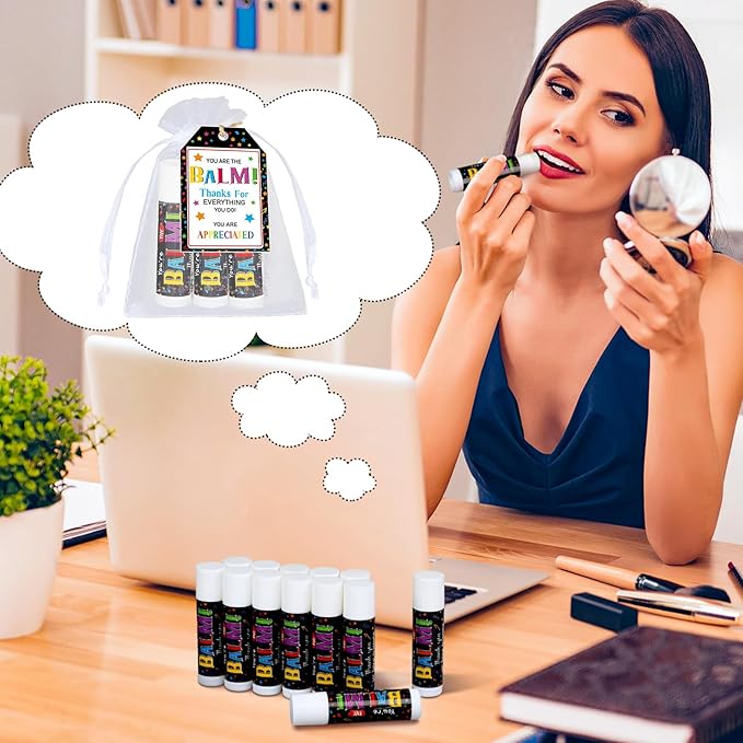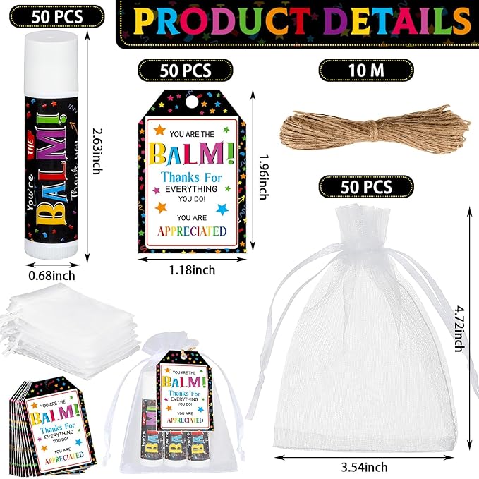 - Bulk Staff Appreciation Gifts for Guests: you will get 50 pcs vanilla flavor lip balms with 50 pcs organza bags and 50 pcs thank you tags, cute small gifts and easy to put together, smell good and guests will enjoy them