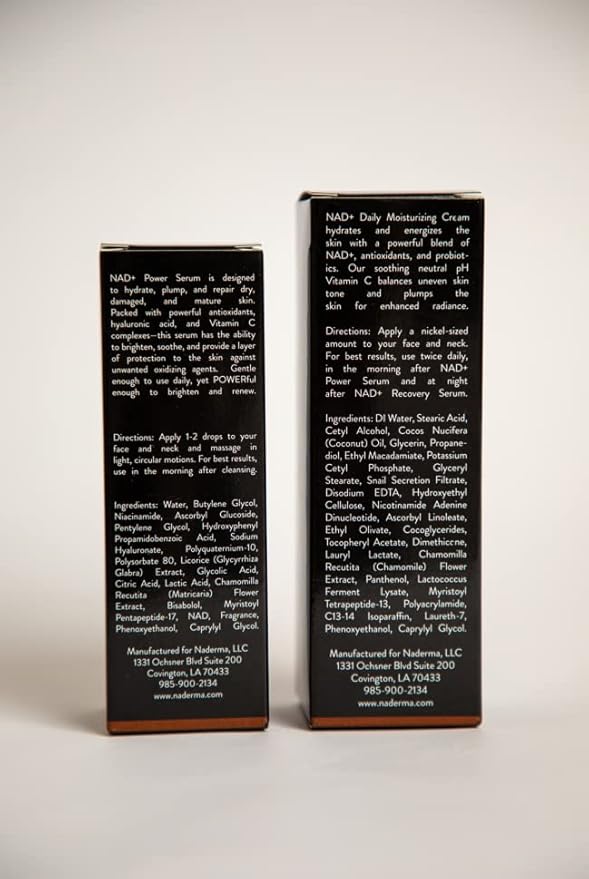 - NAD+ DAILY MOISTURIZING CREAM- A daily moisturizer packed with powerful NAD+, Coconut Oil, Chamomile and SNAIL filtrate!