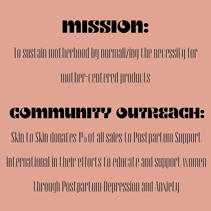 - Good for Mom, Safe for the Planet: We are happy to include only nature-centered ingredients in our products. Skin to Skin is also dedicated to the decrease in waste. We store all our products in earth-friendly bamboo and glass containers.