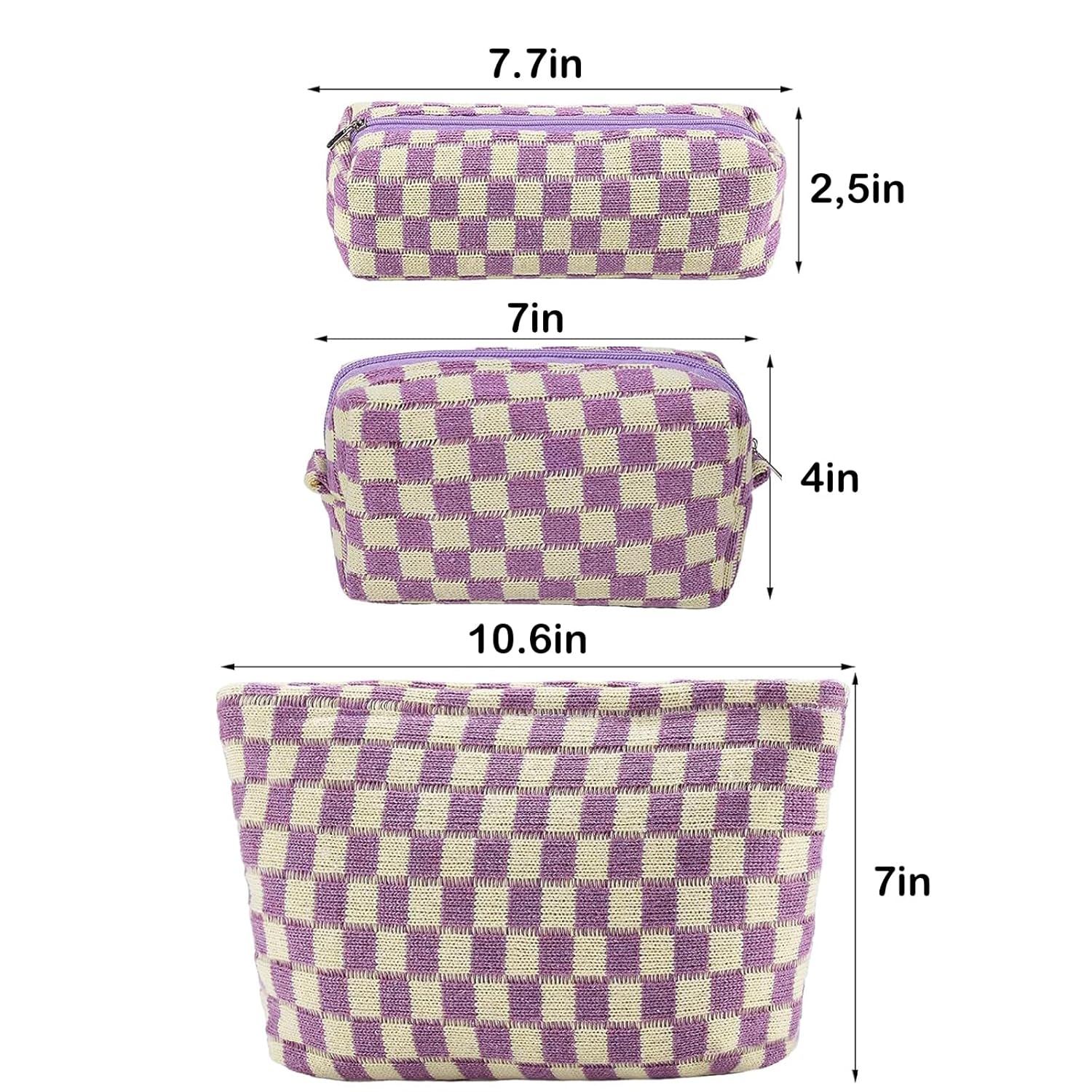 - LARGE CAPACITY AND PREMIUM MATERIAL: The cute makeup bag measure 10.6×7 inches, 7×4 inches and 7.7×2.5 easy to carry. The checkered makeup bag is made of soft knitted fabric, easy to clean. The smaller ones can be used as pencil case or pencil pouch. This makeup travel bag can also hold small items such as makeup, skincare products, lipstick, eye shadow, eyebrow brush, etc. Makeup storage bag for women toiletries