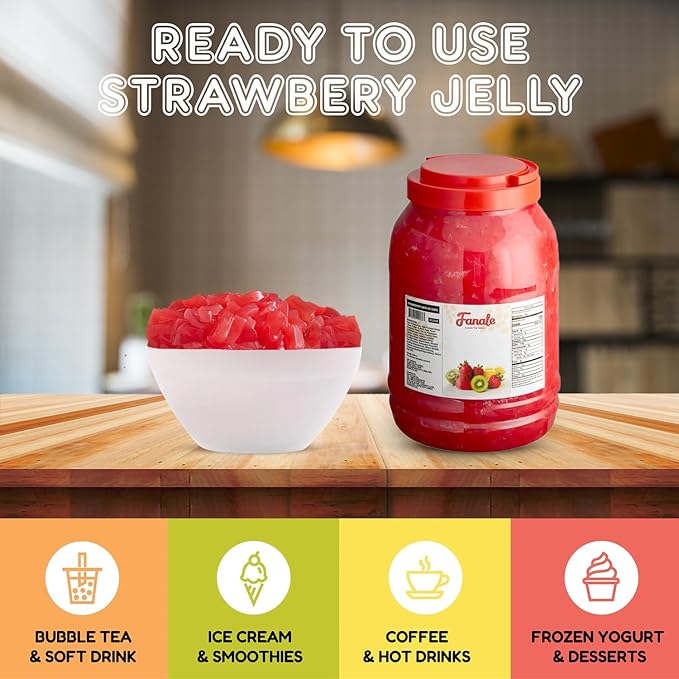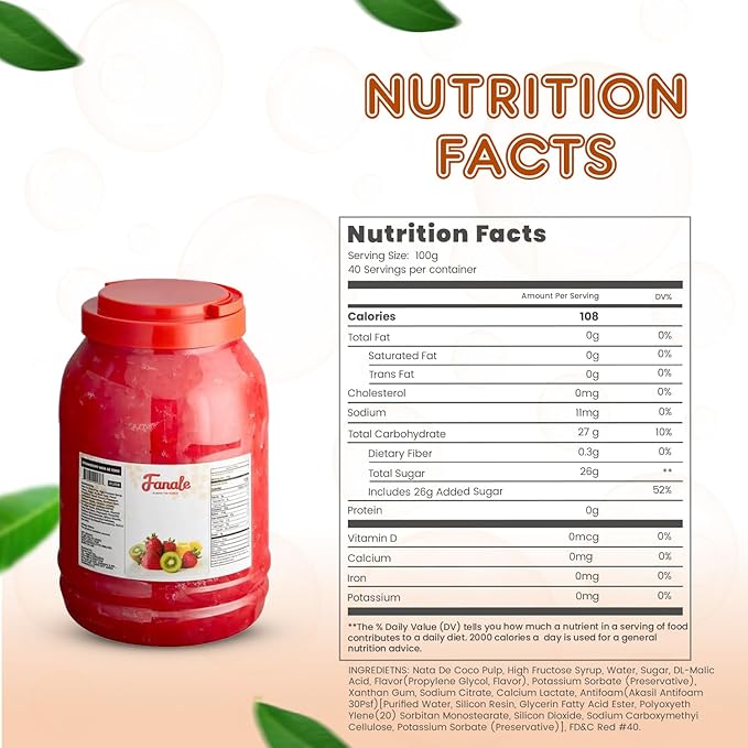 - 𝐒𝐰𝐞𝐞𝐭 𝐚𝐧𝐝 𝐄𝐱𝐨𝐭𝐢𝐜 𝐅𝐥𝐚𝐯𝐨𝐫: Each Fanale coconut jelly boba tea variety is infused with sweet and exotic flavors that complement a range of recipes. This nata de coco jelly topping includes strawberry, lychee, blueberry, mango, sakura, green apple, coconut, Konjac, and coffee flavors, adding a distinct and delightful twist to your creations.