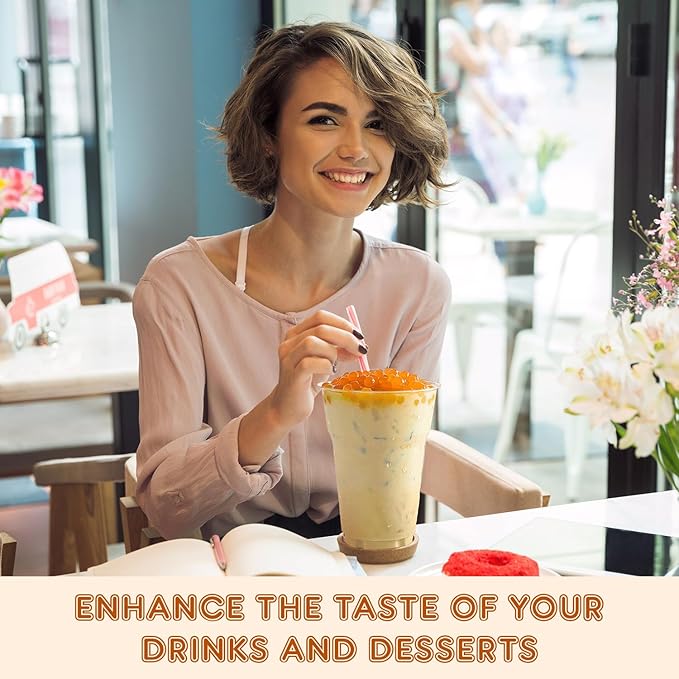 - 𝐄𝐧𝐫𝐢𝐜𝐡𝐞𝐝 𝐖𝐢𝐭𝐡 𝐉𝐮𝐢𝐜𝐲 𝐆𝐨𝐨𝐝𝐧𝐞𝐬𝐬: The fruit boba pearls are filled with natural and organic Mango goodness. You get a juicy, mouthful taste of Mango with every bite and slurp of your favorite beverages.