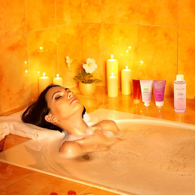 Tahari Spa Gift Set for Women, Vanilla Lavender Spa Set, Bath Kit for Women Gift Set Includes Body Lotion, Body Wash, Hand Cream, Lotion Gift Set for Women, Birthday Gifts For Women - (Black)