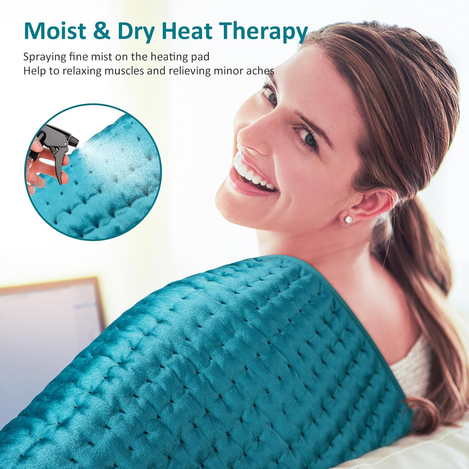 Electric Heating pad for Back/Shoulder/Neck/Knee/Leg Pain, Cramps and Arthritis Relief, 6 Fast Heating Settings, Auto-Off, Machine Washable, Moist Dry Heat Options, Extra Large 17" x33"