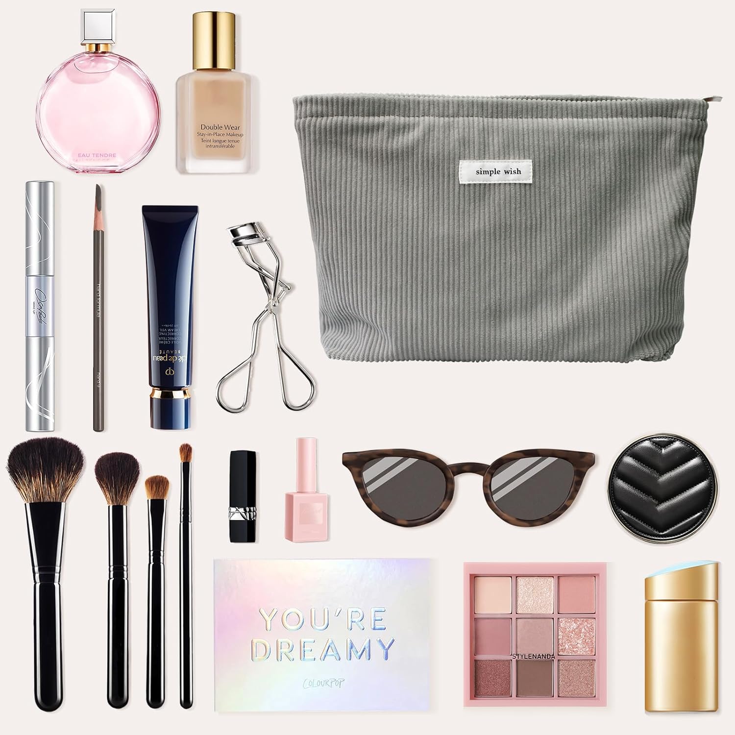 - 【Quality Materials】Our cosmetic bag feature a double-layer design, with an outer layer made of high-quality corduroy fabric and an inner layer made of durable canvas, which is not only durable but also soft to the touch, giving it a luxurious feel.