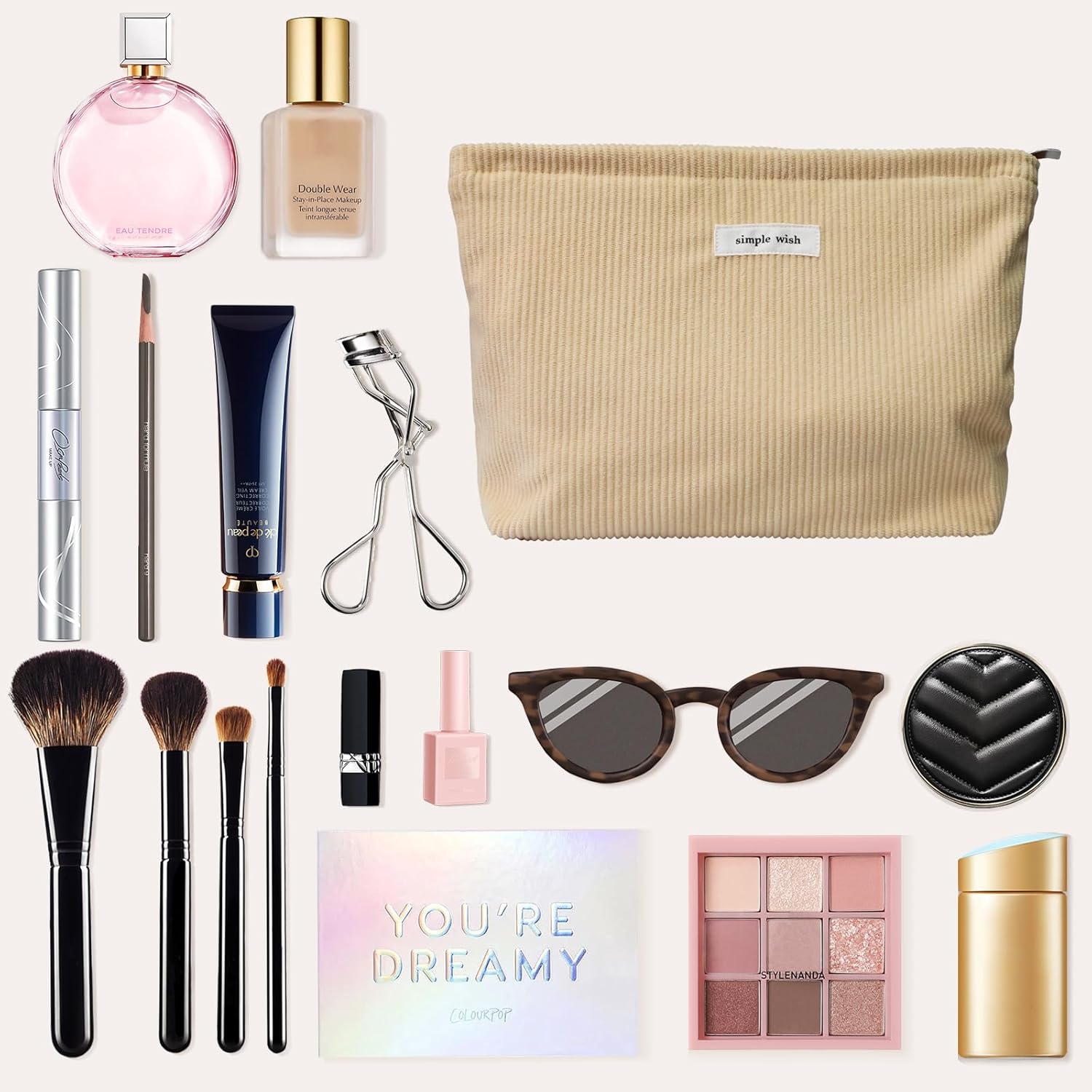 - 【Quality Materials】Our cosmetic bag feature a double-layer design, with an outer layer made of high-quality corduroy fabric and an inner layer made of durable canvas, which is not only durable but also soft to the touch, giving it a luxurious feel.