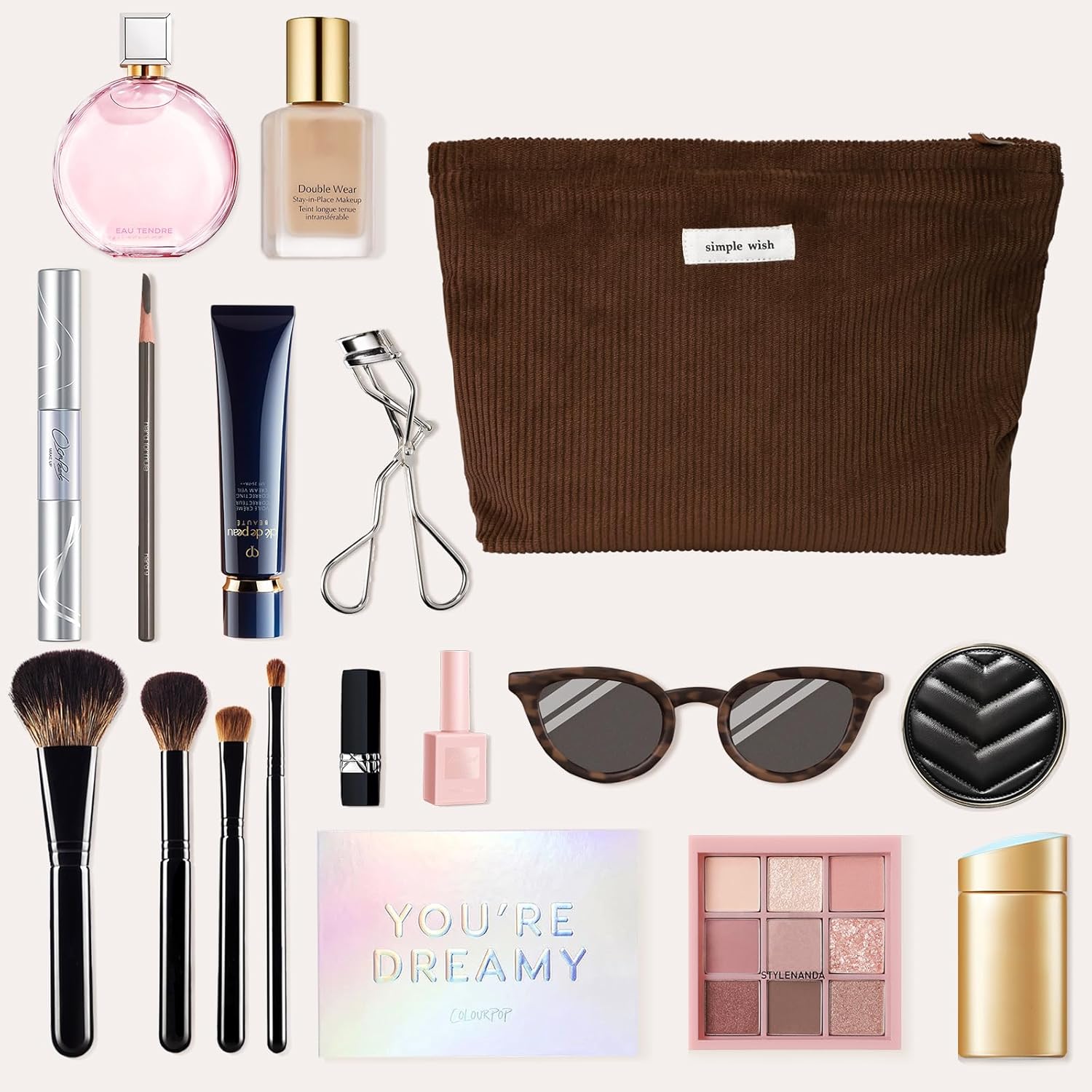 - 【Quality Materials】Our cosmetic bag feature a double-layer design, with an outer layer made of high-quality corduroy fabric and an inner layer made of durable canvas, which is not only durable but also soft to the touch, giving it a luxurious feel.