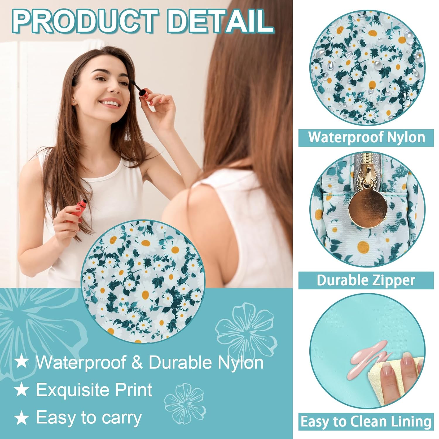 - 【Superior Quality】The floral makeup bag is made of lightweight and durable high quality nylon. It is waterproof and easy to clean, helping to protect your cosmetics and toiletries from water spill accidents.