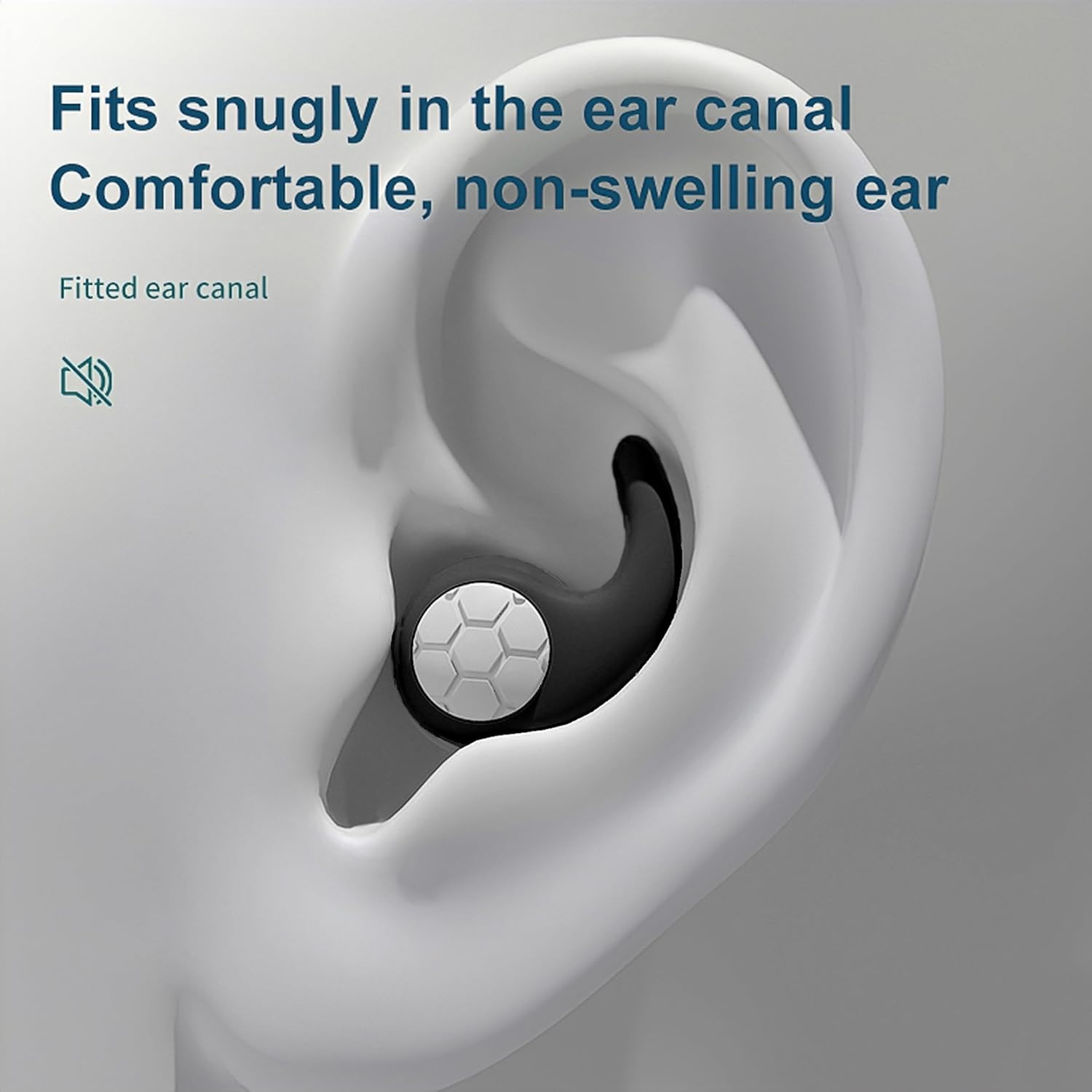 - ALL-DAY COMFORT BY ERGONOMIC DESIGN - These earplugs are made with soft silicone that's kind to your skin, they fit just right without digging into your ear canal. Ergonomic design of flexible tail fits precisely to the ridge of the ear. Wear them all day without any ouches, and they'll stay put perfectly, even for you side sleepers.