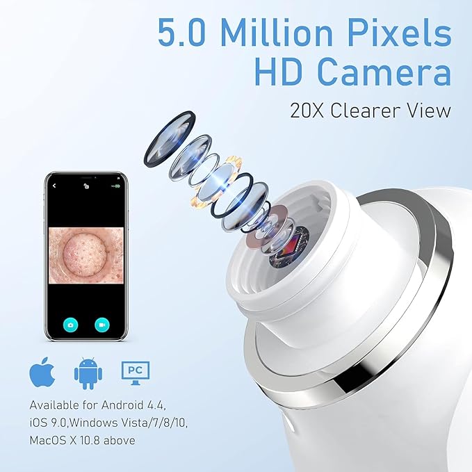 - 【HD camera】Blackhead remover vacuum cleaner built-in 1080P HD camera & 8 LED lights, can magnify the skin 20 times, can clearly see the process of acne removal, support photo & video recording than the traditional acne tools more practical and effective