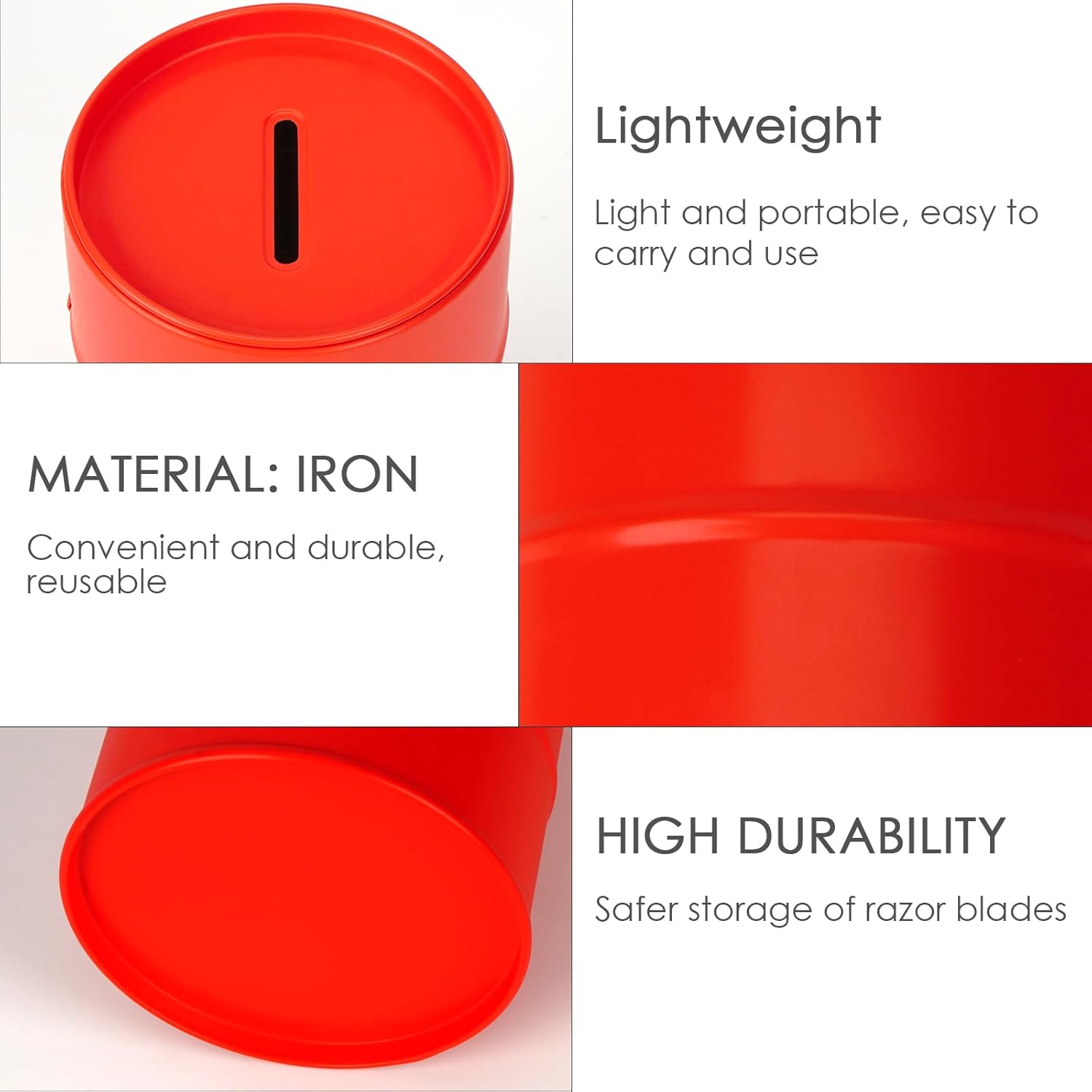 Linkidea Safety Razor Blade Disposal Container Box, Metal Razor Disposal Case Safe Bank for Storing Used Wasted Blades (Red)