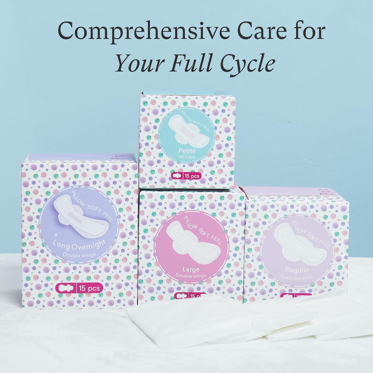- Size Variety Galore: PurComfy presents a diverse range of options! Alongside the 7.5-inch petite mini size pads, we also have the 9.45-inch regular size pads, the 11.22-inch super absorbent large size pads, and the grand 13.78-inch Overnight Pads—essential tween pads and school must-haves for teen girls—catering to different needs. Whether it's day or night, whether you're active, studying, going out, or sleeping like a queen, our sanitary pads provide you with the best support.