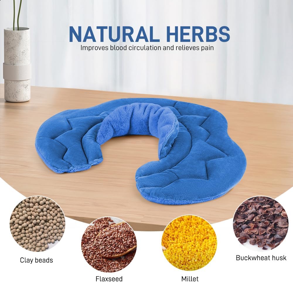 Microwavable Heating Pad for Neck and Shoulders, Weighted Microwave Moist Heated Wrap for Pain Relief Muscle Stress Tension, Heat Neck Wrap with Aromatherapy, Hot & Cold Compress, Blue
