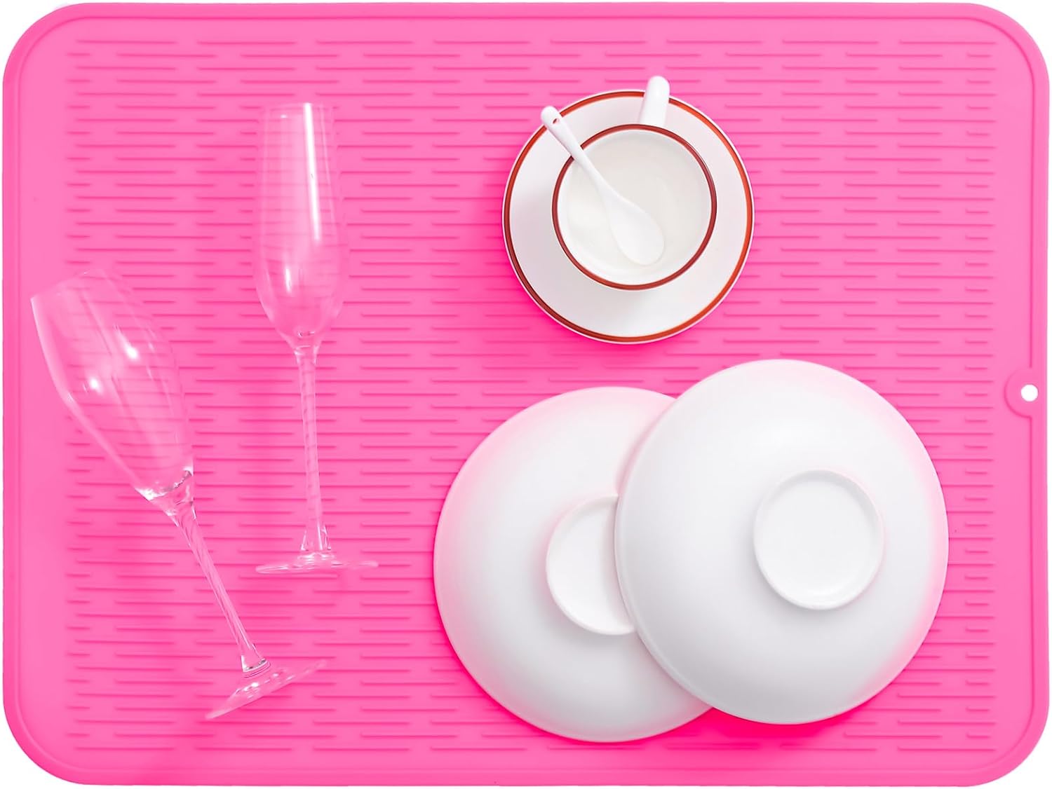 Silicone Dish Drying Mat for Multiple Usage,Easy clean,Eco-friendly,Heat-resistant Silicone Mat for Kitchen Counter or Sink,Refrigerator or Drawer Liner Rose 2XL 24 inches x 18 inches