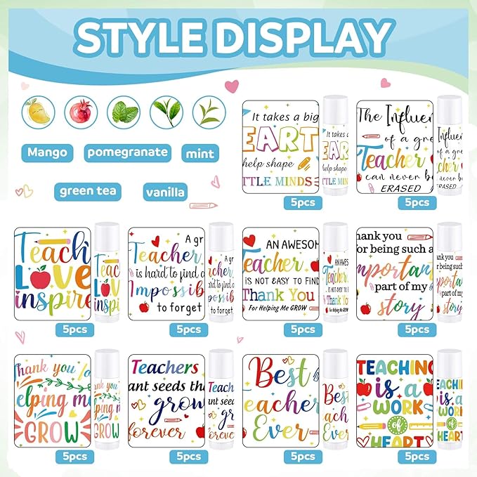 - Assorted Flavors: these teacher appreciation lipsticks are designed with 5 different flavors, including mint, vanilla, green tea, pomegranate and mango, sufficient for you to choose according to your preference, and each lipstick is labelled, convenient for you to recognize