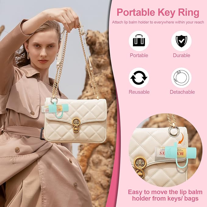 - 👍 【No More Losing Lip Balm】- Easy to use and attach the keychain chapstick holder to everywhere within your reach. No more digging through your bag to find chapstick. And no more worrying about losing your lip balm.