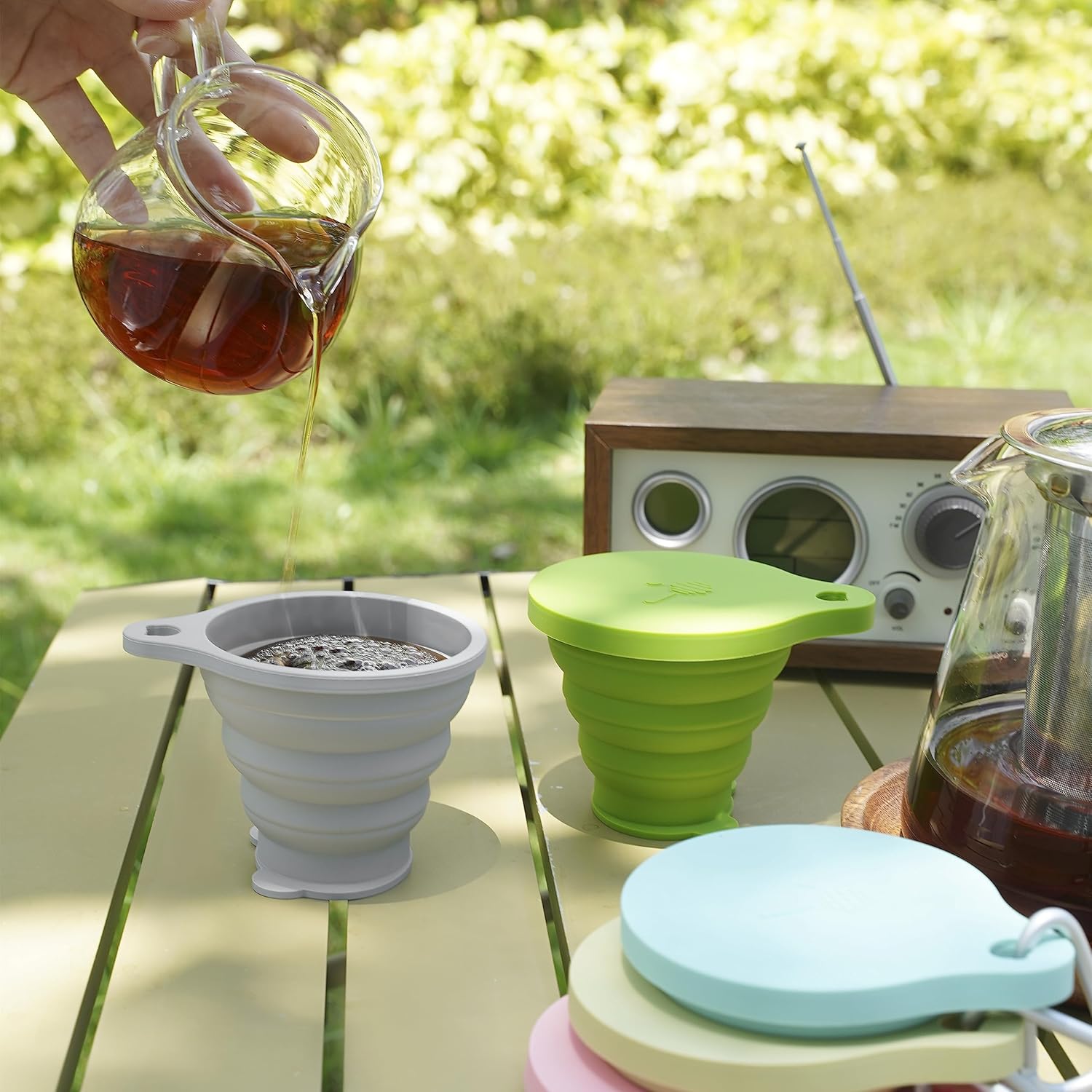 - đź’§Upgrade & Thicken: Folding cups are made of food-grade silicone, BPA-free, non-toxic, odorless, durable, reusable. Heatproof from -40F to 446F, silicon cups are built to safely accommodate warm coffee as well as ice-cold beverages.