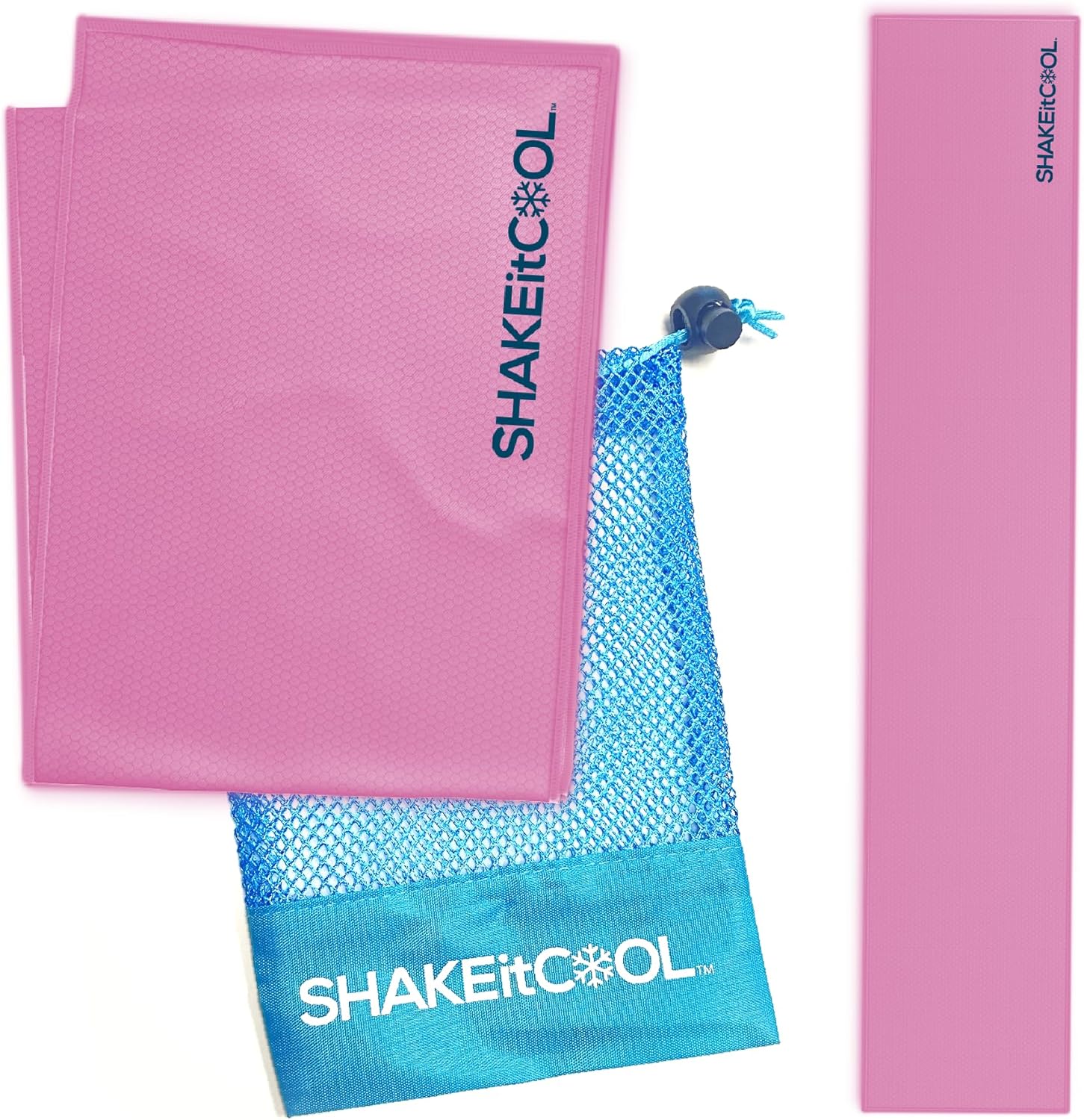 SHAKEitCOOL Original Cooling Towel – Be Cool in Style - Heat Relief, Soft, Lightweight, Sun Protection, Easy Clean - Perfect for Biking, Running, Yoga, Gym, Gardening - Pink