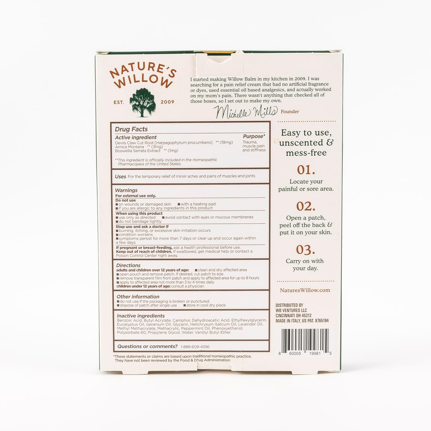- Fast, Natural Relief: Infused with Arnica and White Willow Bark, our patches provide quick, effective relief for sore muscles and joints