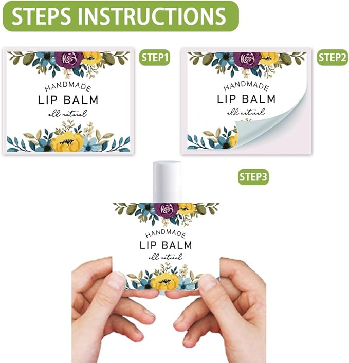 - Flower Theme--These lipstick tag stickers are designed with flower, wreath and "Lip Balm Handmade", "Lip Balm All Natural Handmade" word pattern, Fine printing technology makes every pattern delicate and beautiful.