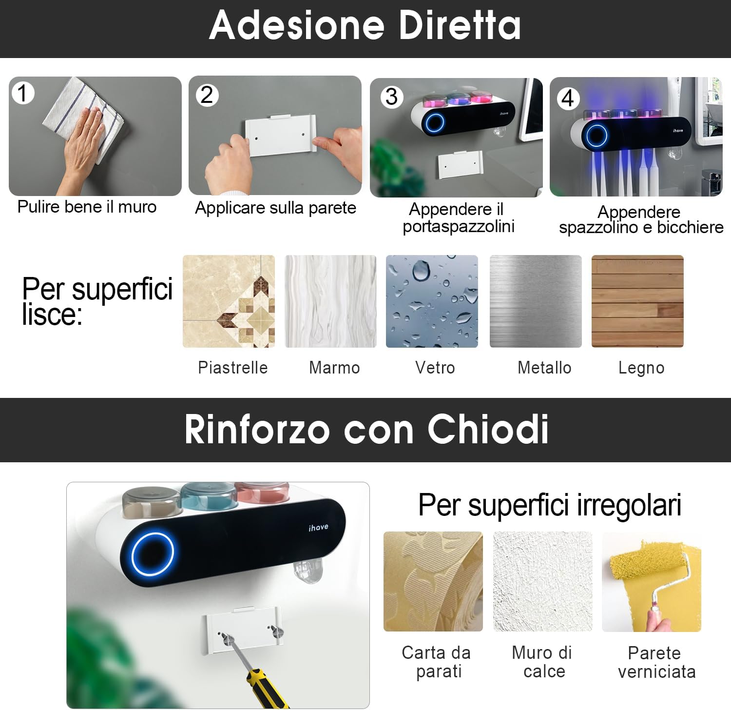 - 24/7 Protection with Smart Cruise Disinfection: The iHave toothbrush holders utilize advanced UVC+UVA dual-band technology to achieve a 99.99% disinfection rate. The toothbrush sanitizer’s intelligent cruise mode ensures continuous disinfection every 4 hours, preventing bacterial regrowth and providing 24/7 hygiene protection.