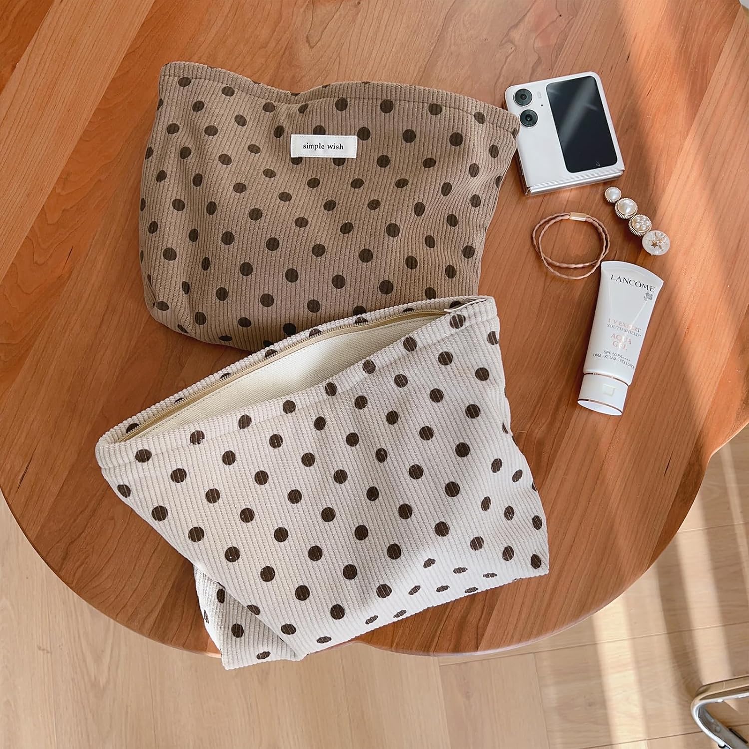 - 4. CHIC AND CUTE: This adorable makeup bag is made of corduroy with cute polka dot pattern, not only feels great but also looks cute. The simple and stylish design is suitable for every woman.