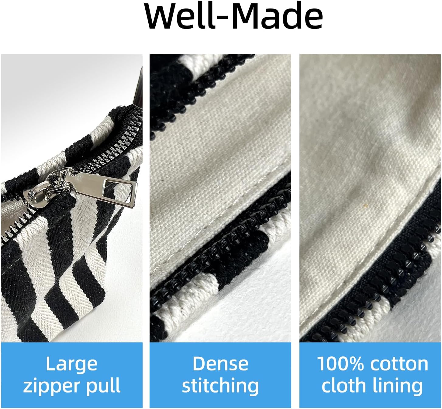- Durable & Lightweight Canvas Makeup Bag– Made with tightly woven striped canvas that is both light to carry and built to last, perfect for everyday use or travel.
