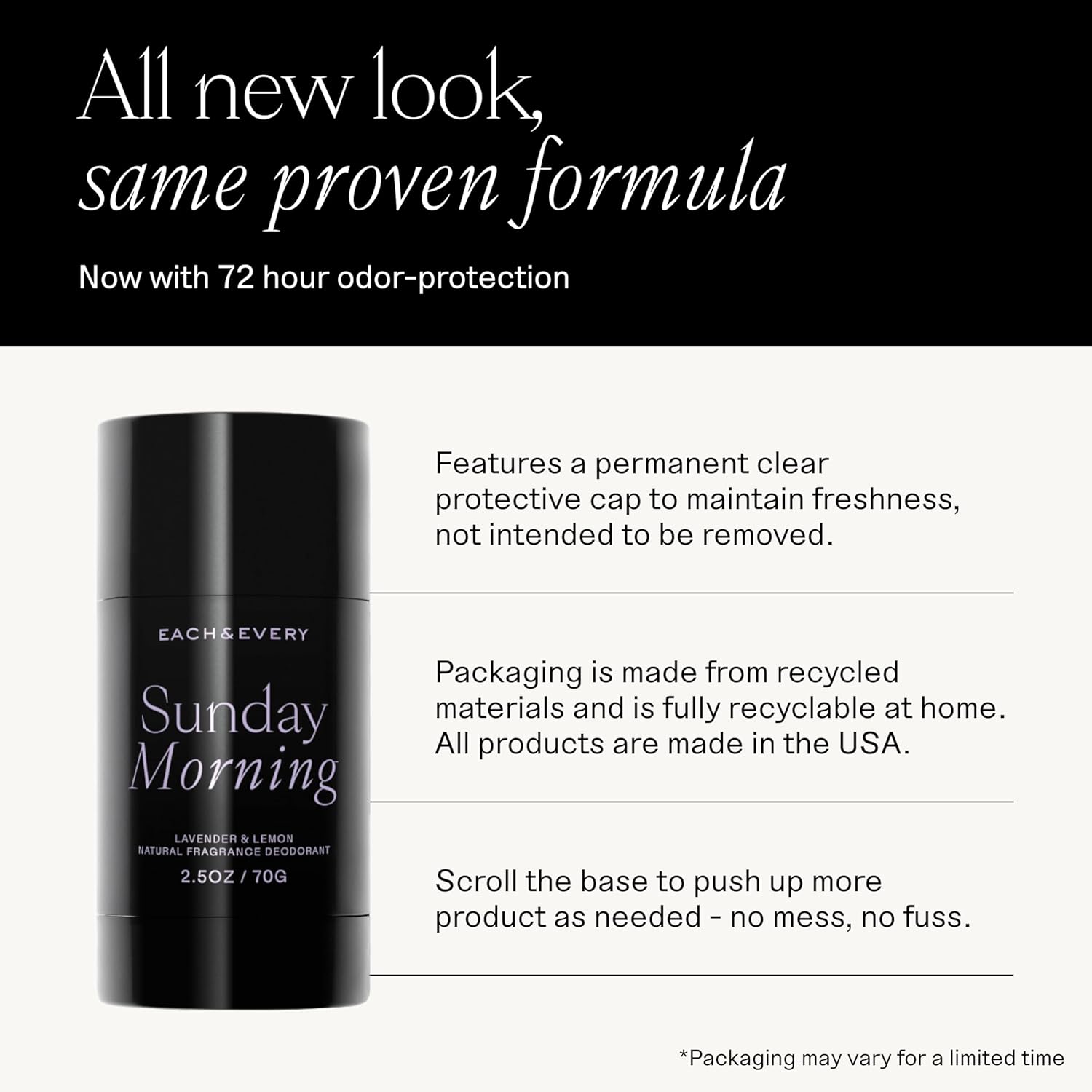 Each & Every Aluminum Free Deodorant for Women & Men, Lavender & Lemon + Coconut & Lime - All Natural Deodorant for Sensitive Skin, EWG Verified - Clean, Baking Soda-Free, Plant-Based - 2.5oz, 2 Pack