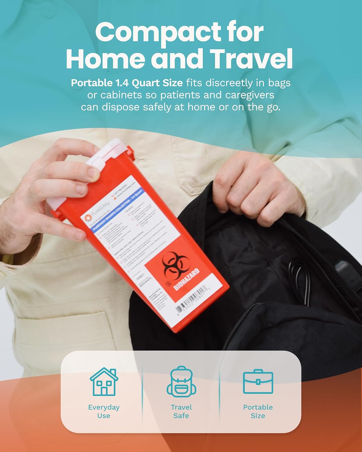 - PREPAID RETURN & COMPLETE DISPOSAL – Sharps container mail back kit includes a 1.4 Quart sharps disposal container, prepaid return label, compliance tracking, and certificate of destruction — safe solution for used needle disposal at home or clinics