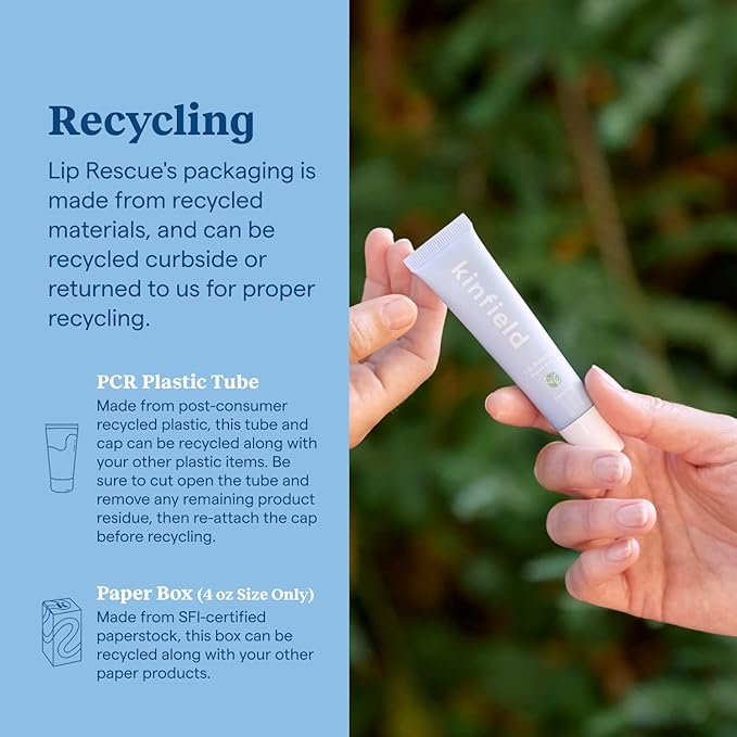 - Safe for people and the planet: Like all Kinfield products, Lip Rescue is cruelty-free, vegan and made without parabens, sulfates, or phthalates - Comes in eco-friendly, recyclable packaging