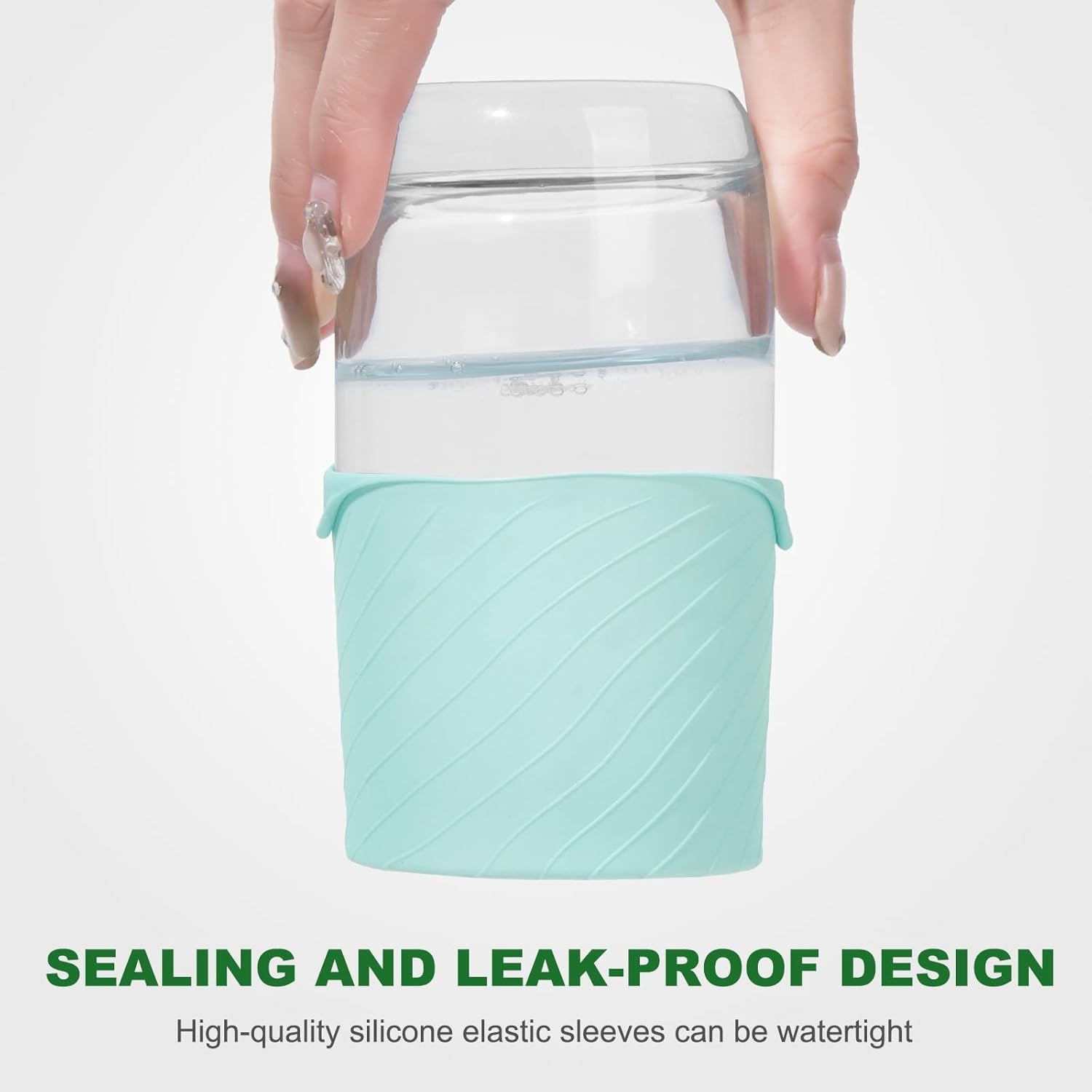 - EASY TO INSTALL: Put this leak-proof sleeve on bottles that are prone to leakage. It can be firmly fixed on the containers of toiletries and other beauty and personal care products. The silicone material can absorb the bottle to prevent leakage during travel and contamination of your Other items.