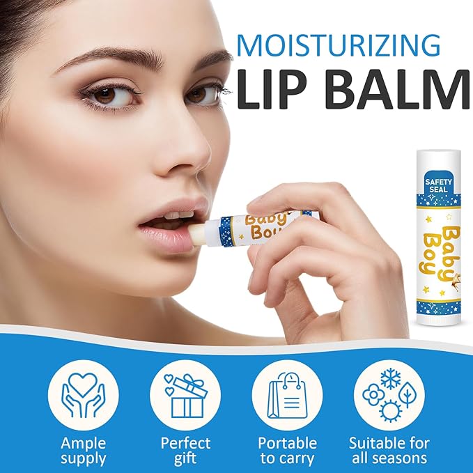 - Baby Shower Favors for Guests: There are 60 pcs vanilla flavor lip balms, which are designed with lovely patterns and [Baby Boy-Thank You For Celebrating With Us] words. This lip balm will be a great gift for baby shower party to show your gratitude to guests