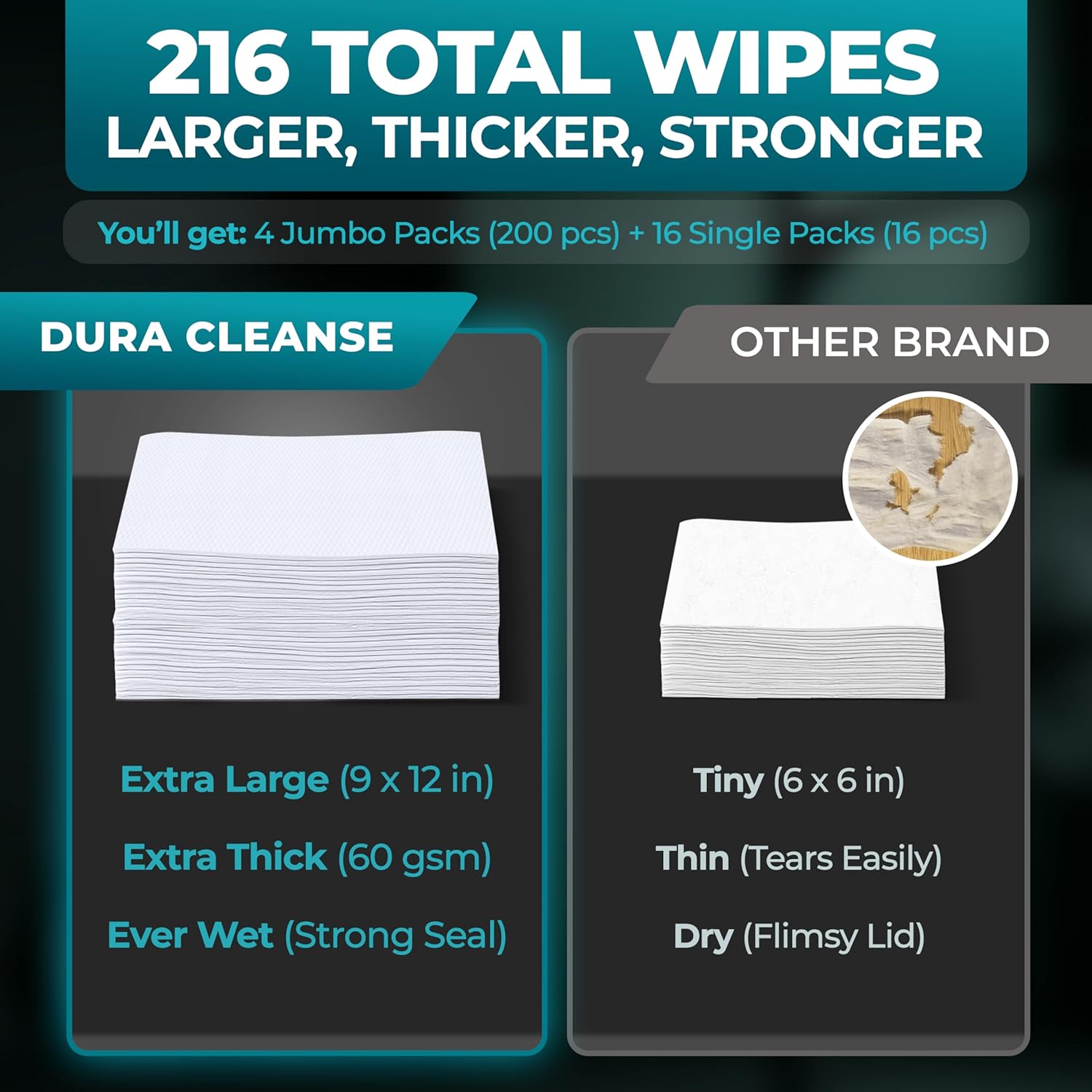 - Travel-Friendly Pack: Our soft shell packaging has a tight resealable closure that ensures maximum moisture retention. Its simple peel-off cover allows quick and easy access to the mens shower wipes while on the go. You get 200 large wipes with 16 more individually packed travel-size shower wipes for men. Perfect to use as tailgating, music festival, beach, glamping & camping essentials, RV camper van must haves, and post workout gym wipes for men. True road trip must haves.