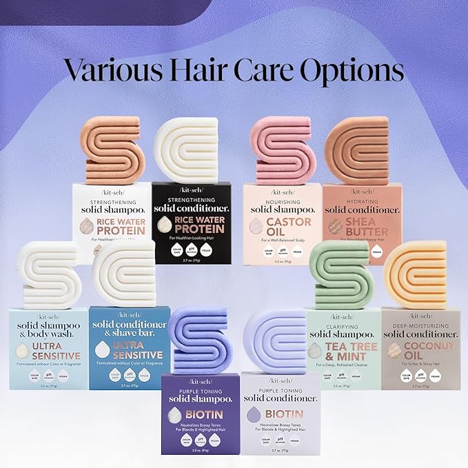 Kitsch Toning Purple Shampoo & Conditioner Bar Set For Blondes & Color Treated Hair - With Biotin for Strengthening & Neutralizing Brassy Tones - Vegan, Silicone & Sulfate Free - Made in USA