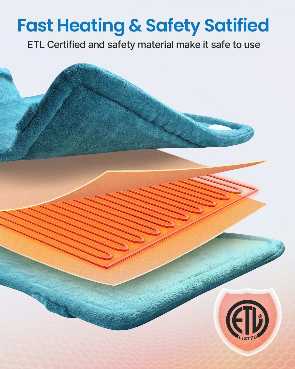- ETL certified & FSA/HSA Eligible: The ETL-certified travel heating pad has built-in overheat protection to ensure maximum safety.This Heated Wrap pad for back, neck, and shoulder pain relief is FSA HSA Approved heating pad. Additionally, we ensure quick responses and effective solutions for any inquiries about our products.