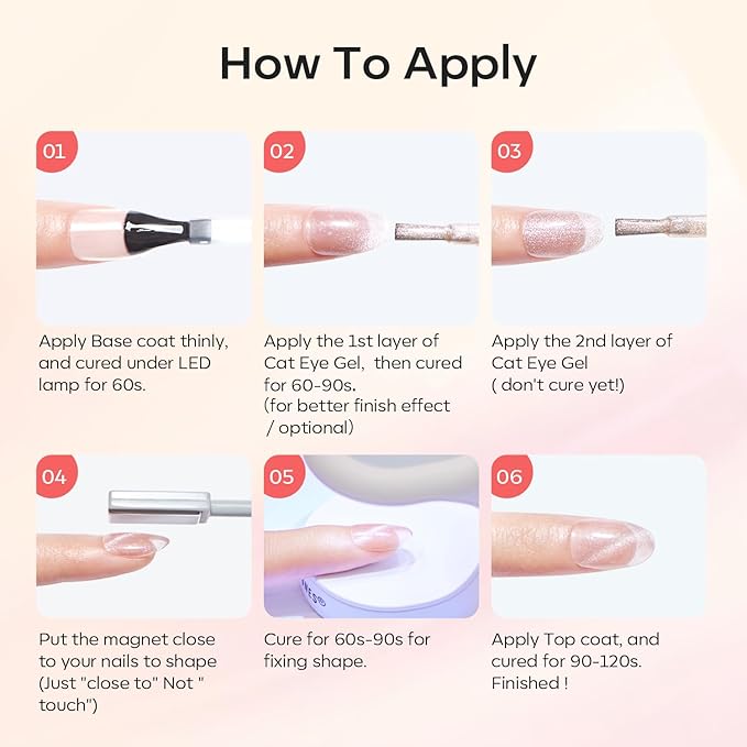 - Care for You: Modelones 9D Cat Eye Nail Gel Polish may cause skin allergies in rare cases. Perform a patch test before use. This UV LED gel remains sticky after curing and requires a base and top coat (not included). Ensure proper application for the best results.