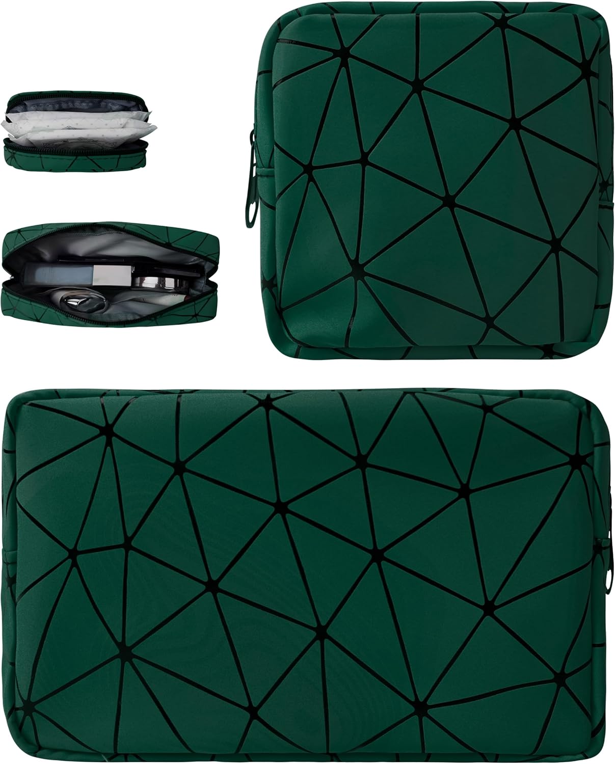 Sanitary Napkin Storage Bags Set, Portable Period Bag for Teen Girls Small Make up Bag for Purse, Portable Menstrual Pad Pouch(Large & Small Green)