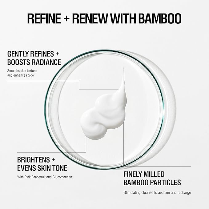- SMOOTHING. Formulated with natural Bamboo exfoliant, Aloe, Vitamin C, Pink Grapefruit and Glucomannan extract, Vitamin E, Glycerin and Camellia Kissi Seed oil. Skin texture feels smooth and soft