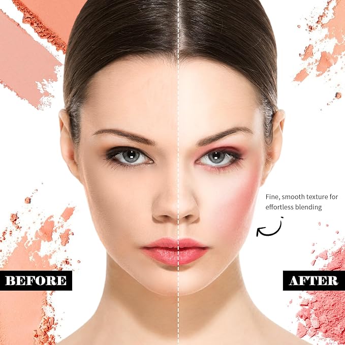 - FINE POWDER BLUSH: The texture of the blush is fine and smooth, and the makeup is natural and attractive, so that you can relax all day long.The matte blush blends evenly into the skin and naturally brightens the complexion.Lightweight powder, melt with skin well, keep the base foundation look delicate after applied.