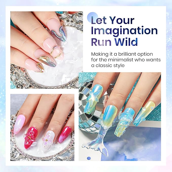- Aurora Blue & Clear Solid Builder Gel: MIZHSE new upgraded solid builder gel for nails contains 2*30 g/1.05 oz hard gel for nails, 1*3D mold, 1*double-head pen for 3D nails, and 36 pcs nail forms. This nail builder gel is solid material, and won't leak everywhere, just use your finger to extend your nails. Easy application, friendly for nail beginners and nail lovers