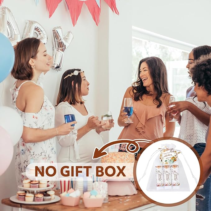 Demissle 50 Pcs Baby Shower Lip Balm Gift Set with 100 Pcs Organza Bags Baby Shower Party Favor for Guest Thank You Tag Rope Baby Shower Party Decoration Gender Reveal Souvenirs (Pumpkin and Flowers)