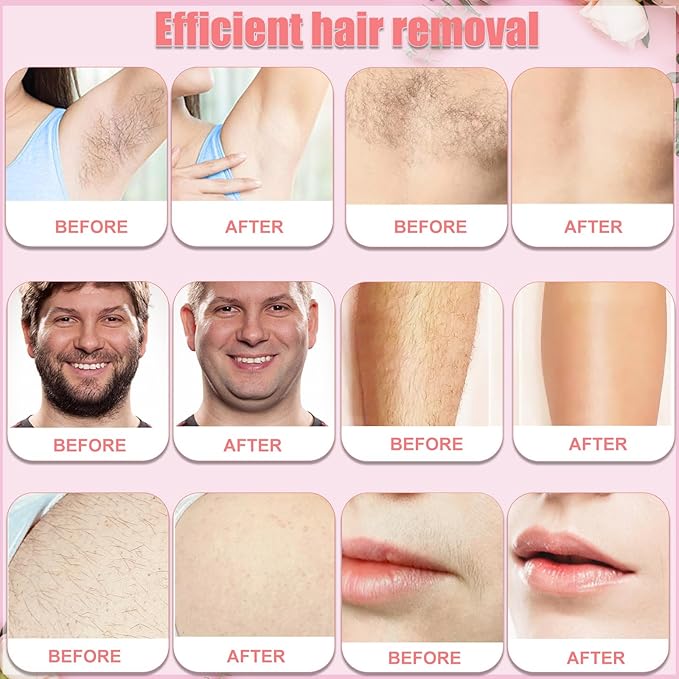 - Effective hair removal and long lasting: The formula of Purplesky wax beans can effectively remove stubborn thick/coarse hair roots deep in the skin. Hard waxing beads ensure a hair removal effect of up to ninety-seven percent and maintain a smooth and hairless skin surface for five to seven weeks