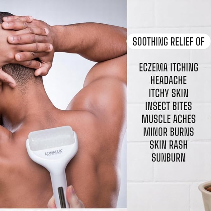- At Loma Lux, WE KNOW SKIN CARE. Our dermatologist founder created skin health solutions that have helped thousands of acne, eczema, and psoriasis sufferers for over 20 years. We believe in simple solutions backed by science. Multiple studies have been published on the use of ice to relieve skin itch and pain.