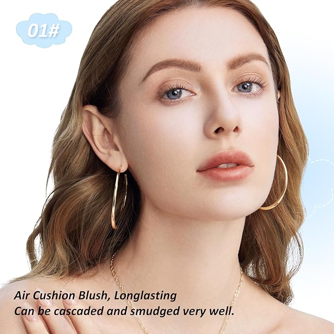 Boobeen Powder Blush for Cheeks, Air Cushion Matte Blush, Natural Highly Pigmented Blush Makeup Easy to Blend, Loose Blush Compact Long-lasting