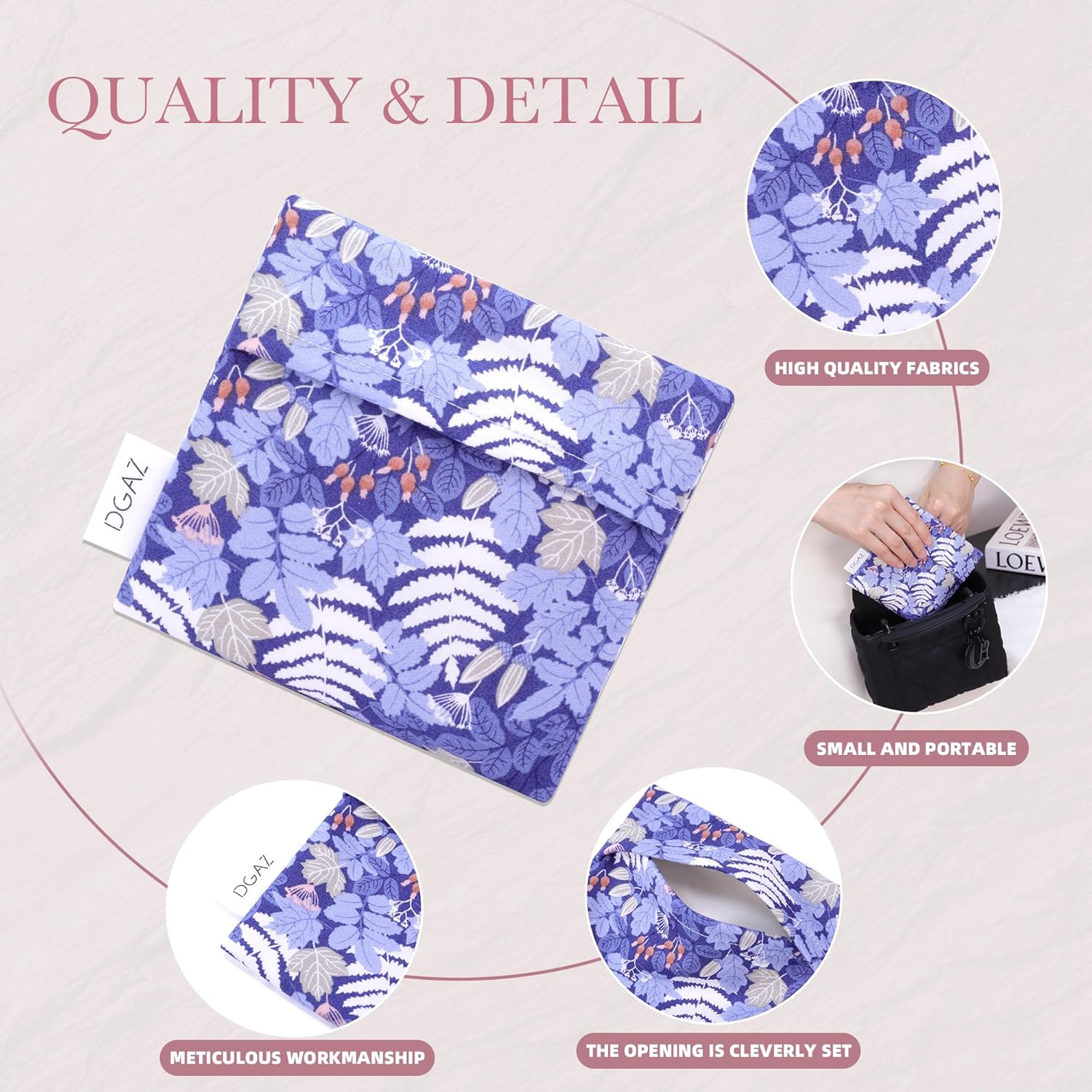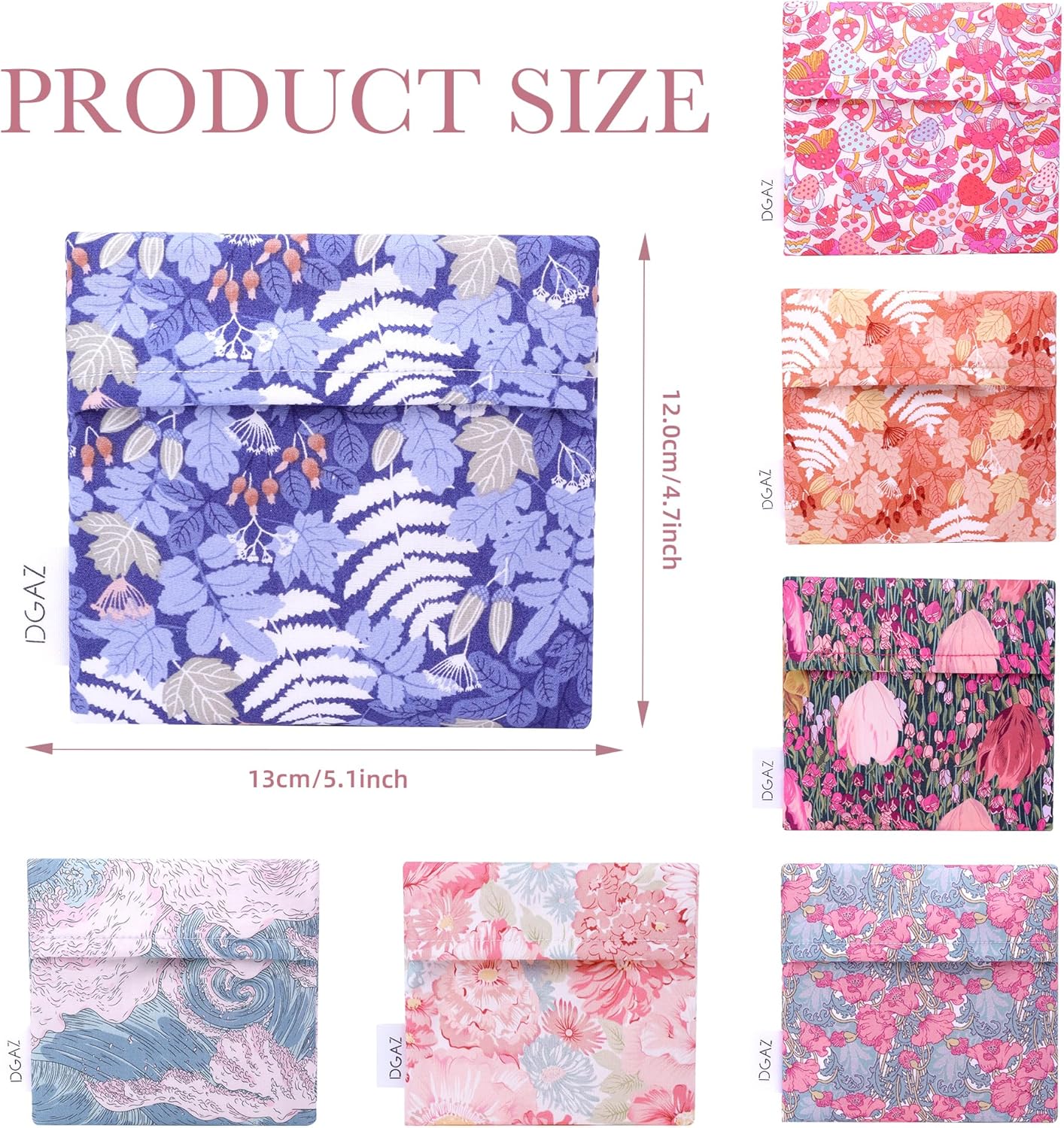 - 💕 【MEET MULTIPLE OCCASIONS】-Pad storage pouch is compact in size: 5.1 x 4.7 inches. Great for storing sanitary napkins, tampons with applicators, panty liners, small personal cleansing kits, reusable pads and more. Nice menstrual bag. Convenient for office, business trips, shopping and traveling.