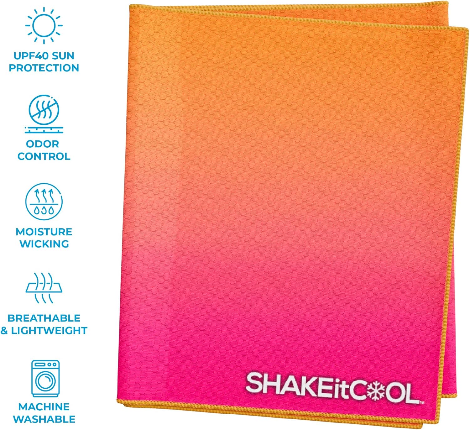 SHAKEitCOOL Extended Size Cooling Towel – Be Cool in Style - Heat Relief, Soft, Lightweight, Sun Protection, Easy Clean - Perfect for Biking, Hiking, Running, Yoga, Golf - Pink Orange Ombre M
