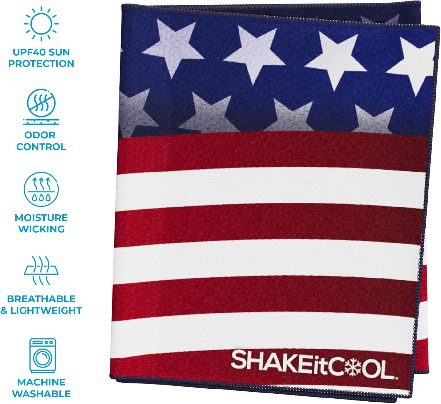 SHAKEitCOOL Extended Size Cooling Towel – Be Cool in Style - Heat Relief, Soft, Lightweight, Sun Protection, Easy Clean - Perfect for Biking, Hiking, Running, Yoga, Golf, Gardening - Wavy Flag M