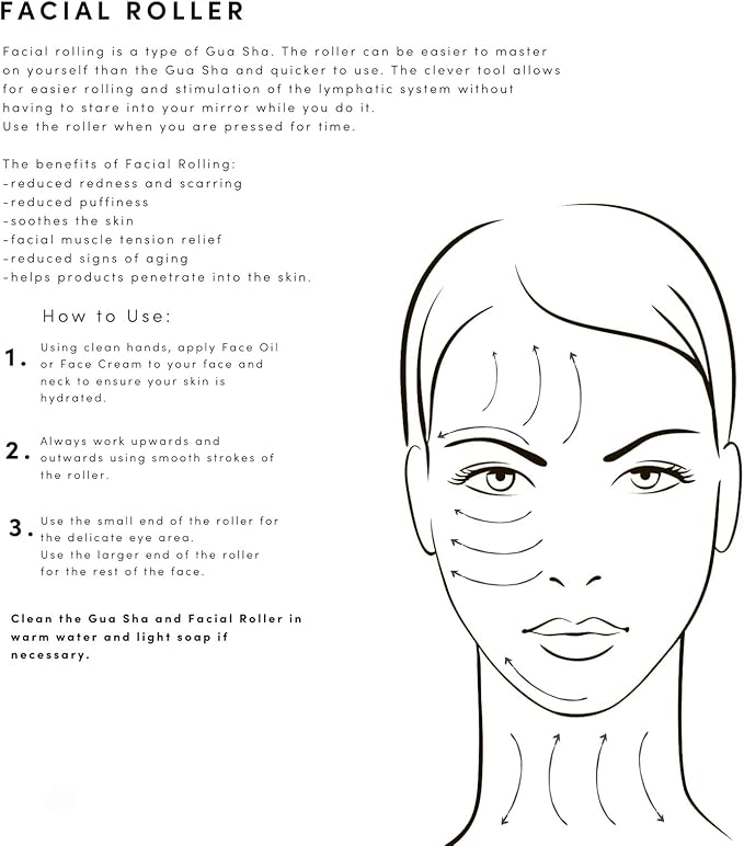 - COMPLETE SKIN CARE KIT: The dual-sided roller has a long side for toning larger areas and a short one for smaller spots. It comes with an obsidian gua sha, and instruction car.