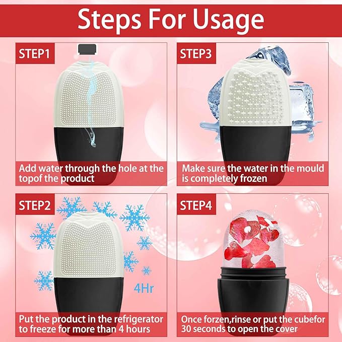 - 🙌🏼 EASY TO USE: Fill the ice roller massager mold with water. Freeze in refrigerator for more than 4 hours,when using it apply the ice to your skin in 30 second intervals in circular motions. For optimal results, It is recommended to use 1 or 2 times a day